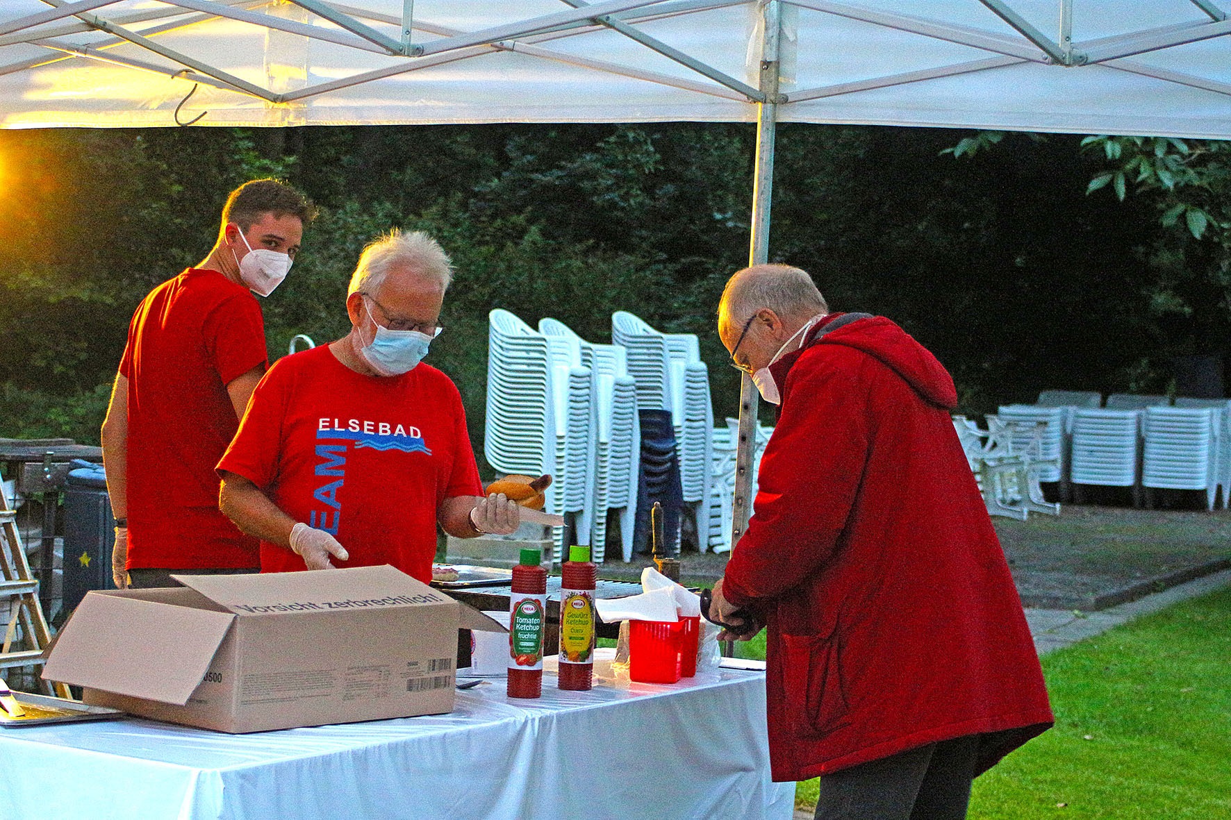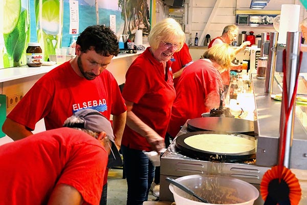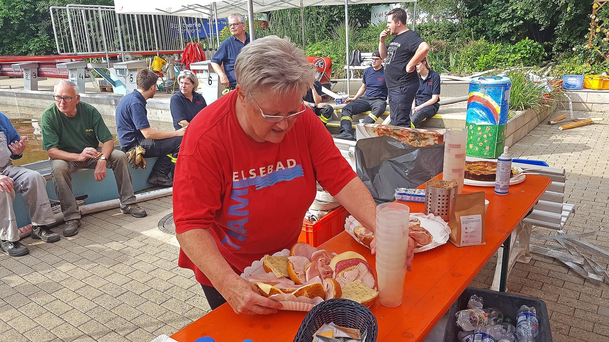 Gut versorgt werden wir mit vielen leckeren Spenden: mehrere Kuchen, belegte Brötchen, ein großer Topf Chili con carne und viele Bratwürstchen - auch die Liebe zum Elsebad geht durch den Magen!