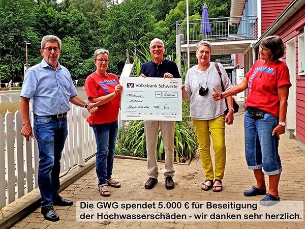 18. Juli: Für die unglaubliche Hilfsbereitschaft müssen wir uns ganz groß bedanken: bei den vielen Helfern, die ihre tätige Hilfe angeboten haben und mit oder ohne Arbeitsgerät spontan ins Elsebad gekommen sind; bei denjenigen, die mit belegten Brötchen, Kuchen oder Fisch-Burgern die Helfer unterstützt haben; und bei denen, die Spendenaktionen ins Leben gerufen haben und selber gespendet haben. Eine Großspende über 5.000 € haben wir von der GWG bekommen. Wir sind sehr sehr froh, dass das Elsebad so gut im Herzen der Bürger von Schwerte aufgehoben ist.