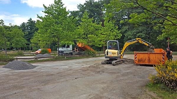 Die Firma "Diagramm Halbach" hat das Gerät mit 5.000 € gesponsert; bei einem Ehrenamtstag in der nächsten Zeit werden Auszubildende der Firma die Grube noch mit vielen Tonnen Sand auffüllen.