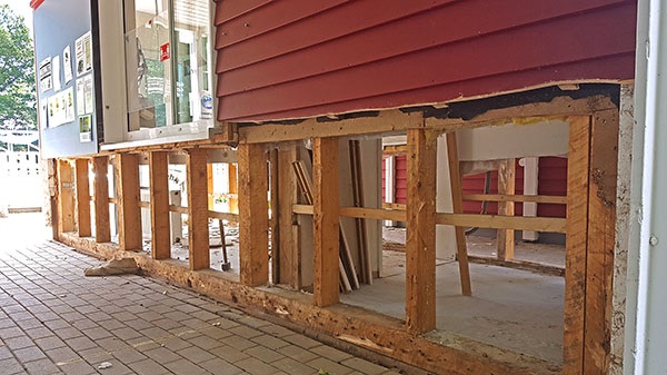 31. Januar 2022: Ein halbes Jahr nach dem Hochwasser ist der Wiederaufbau in vollem Gange. Das Erdgeschoss des Badgebäudes ebenso wie die Technikräume wurden praktisch entkernt, denn hier hatte überall das braune Wasser des „Elsestroms“ ein zerstörerisches Werk vollbracht. Nachdem die Feuchtigkeit gründlich getrocknet worden ist, sind die offenen Wände inzwischen äußerlich geschlossen; nur die roten Fassadenbretter fehlen noch, das Material ist noch nicht zu bekommen; die Fassade wird aber bis zum Anbaden rekonstruiert sein. Der Estrich in den betroffenen Räumen ist neu eingebracht, nun kann der Innenausbau beginnen. Für alle zerstörten Geräte, vor allem Pumpen und die Chlorierungsanlage, gibt es Liefertermine; die Technik wird auf neuestem Stand rechtzeitig eingebaut und betriebsbereit sein. Die elektrische Anlage ist wieder hergestellt und versorgt Gebäude und Anlage wieder mit Strom. Alle Aufbau-Maßnahmen berücksichtigen so weit wie möglich einen nochmals verbesserten Hochwasserschutz.