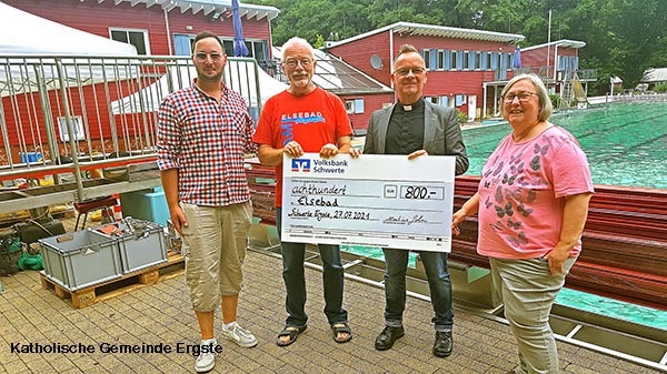 25. Juli: Ruhetag im Elsebad. Aber die Nachricht: Auch die katholische Kirchengemeinde Ergste hat die heutige Kollekte (es war ein Openair-Gottesdienst zum Abschied von Vikar Oliver Schütte) dem Elsebad gewidmet - wie toll, so in den Gemeinden aufgehoben zu sein, herzlichen Dank!