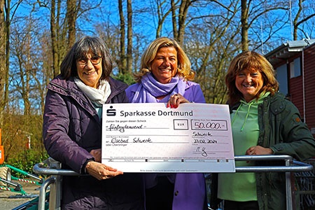 Sonnenenergie für das Elsebad, das wünschen wir uns nicht nur für die Badegäste im Sommer, sondern auch zur Deckung des Energieverbrauchs im Badbetrieb. Für die dafür notwendigen Investitionen haben wir von der Schwerter Stiftung der Sparkasse eine ungewöhnlich hohe Spende bekommen: Einen symbolischen Scheck über 50.000 € übergab uns am 23. Februar Michaela Hacheney vom Stiftungsvorstand.