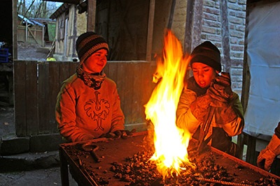 Beim Vater-Sohn-Schmieden vor Silvester 2017 war auch mein kleiner Bruder dabei. Die Betreuung an diesem Tag war super. Es gab vier Feuerstellen, so dass jede Familie viel Raum zum Arbeiten hatte.